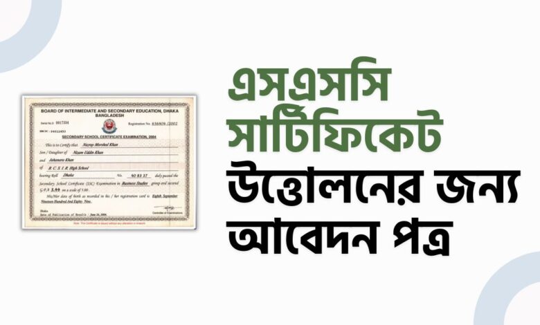 এসএসসি সার্টিফিকেট উত্তোলনের জন্য আবেদন পত্র